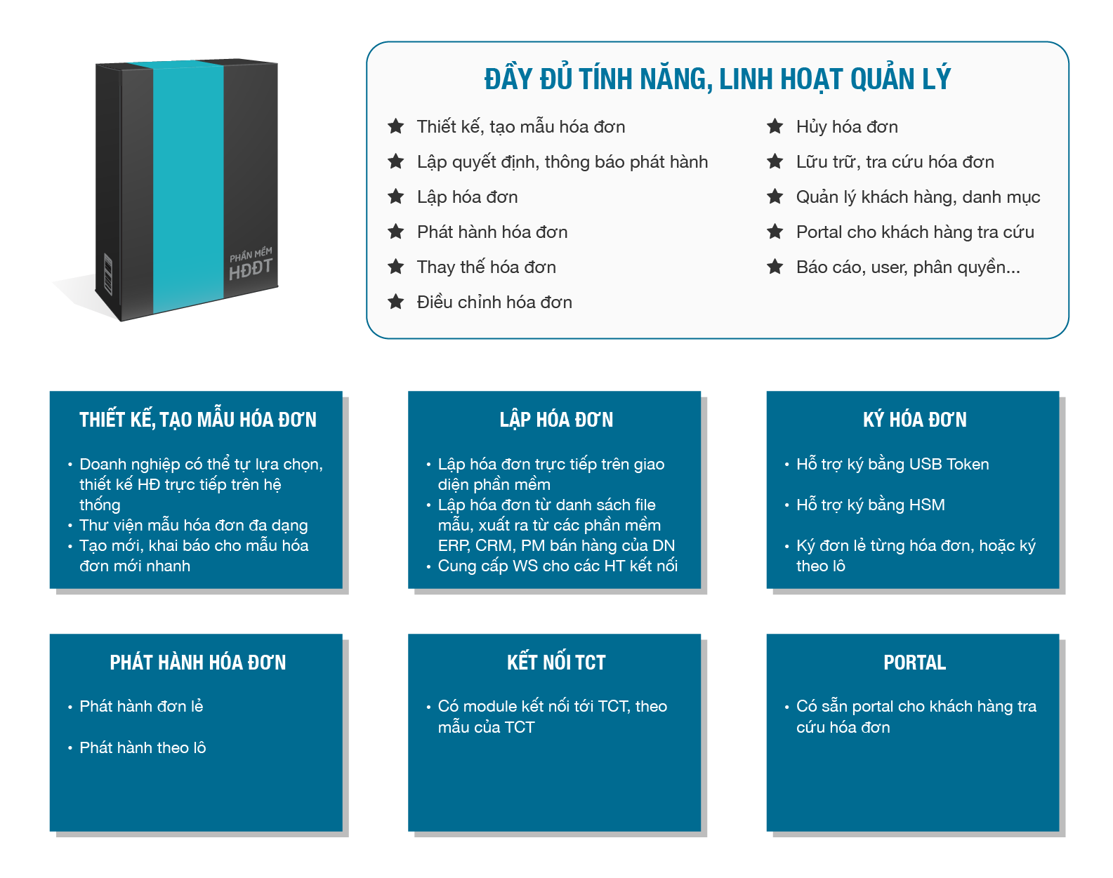 • Sẵn sàng kết nối với các phần mềm kế toán, bán hàng và các phần mềm quản trị khác để phát hành hóa đơn điện tử.