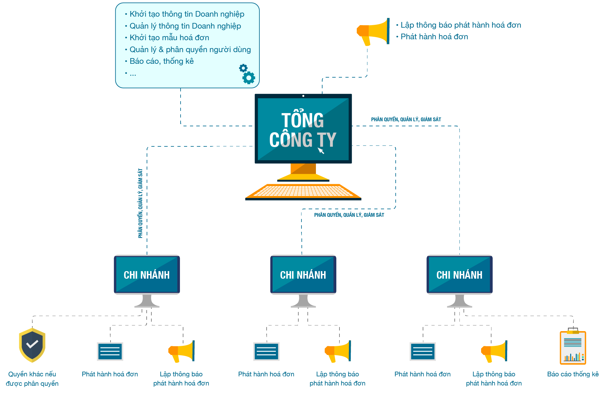 • Đơn vị quản lý có thể quản lý tâp trung hoạt động động sử dụng hóa đơn của tất cả các chi nhánh